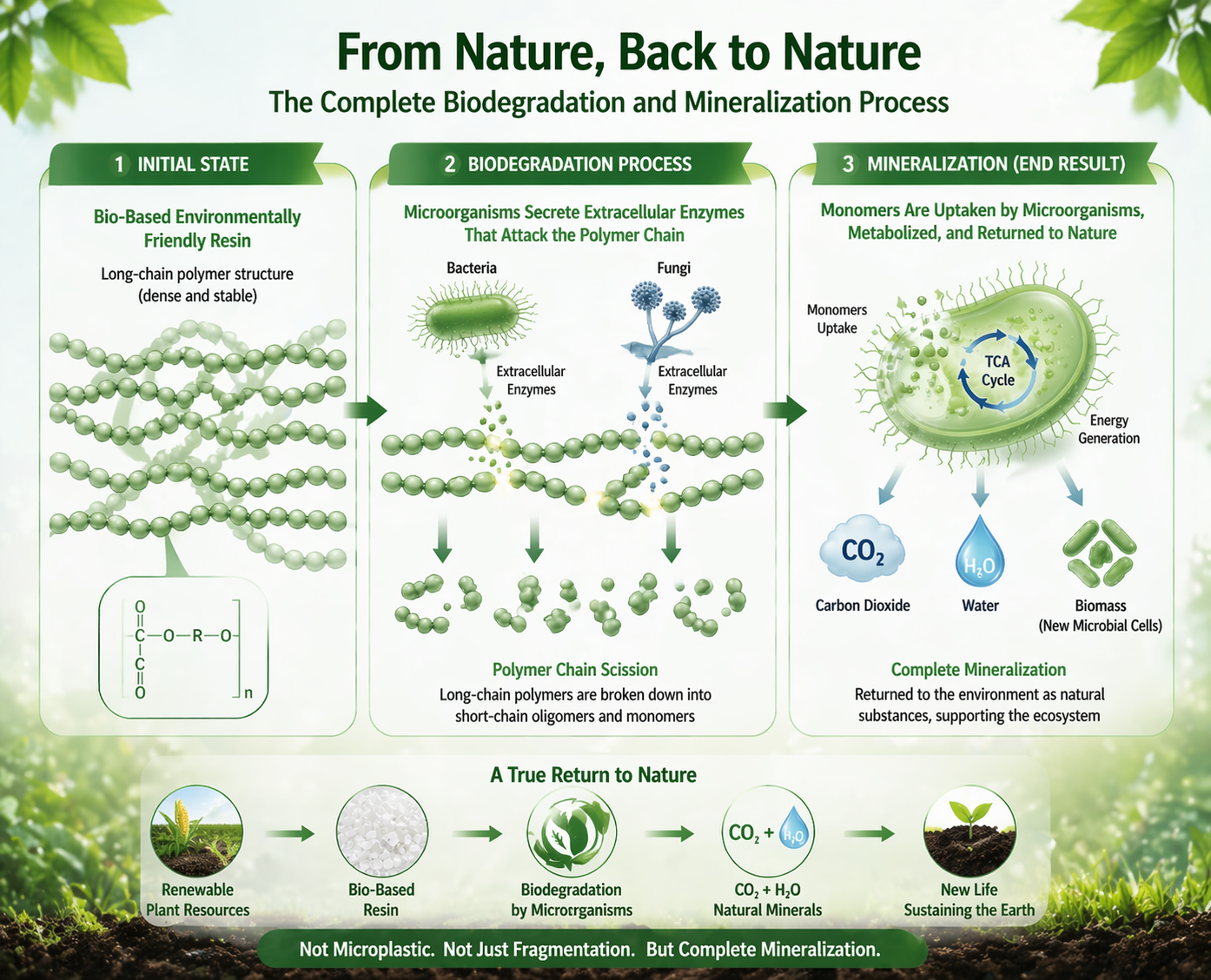 La caratteristica distintiva di una resina ecologica è la sua capacità di subire la decomposizione microbica. Si tratta di un processo a più fasi che inizia con la rottura fisica e chimica delle catene polimeriche. Quando un prodotto realizzato con queste resine entra in un ambiente di smaltimento, che si tratti di una compostiera da giardino o di un impianto industriale su larga scala, diventa una fonte di nutrimento per la popolazione microbica locale. Questa interazione è la pietra angolare della catena alimentare microbica nella gestione sostenibile dei rifiuti, garantendo che i rifiuti di plastica vengano trasformati in preziosa materia organica.