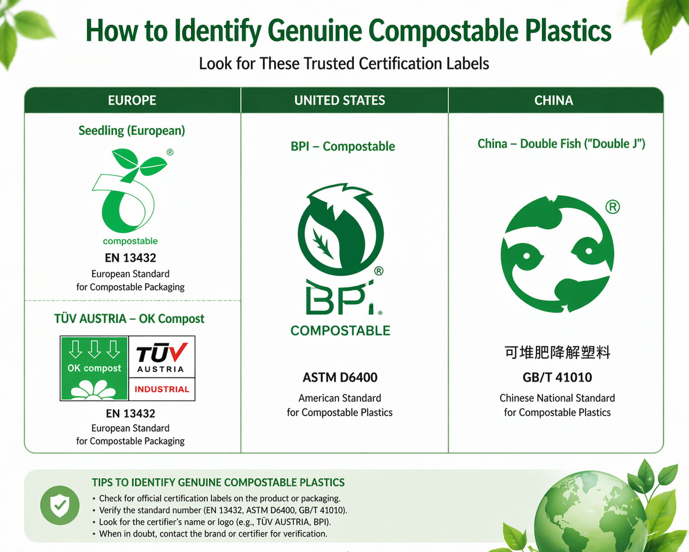 Lo standard ISO 17088 fornisce un quadro globale per identificare ed etichettare la plastica compostabile. La conformità viene spesso verificata da organizzazioni terze come DIN CERTCO o il Biodegradable Products Institute (BPI), che forniscono marchi riconosciuti che aiutano i consumatori e i gestori dei rifiuti a distinguere i prodotti veramente sostenibili dalle alternative ingannevoli. Queste certificazioni sono essenziali per mantenere l’integrità dell’economia circolare e garantire che i flussi di rifiuti organici rimangano esenti da contaminanti non compostabili. Anche le politiche nazionali, come lo standard cinese “GB/T 41010”, si stanno allineando a questi parametri di riferimento globali per unificare i requisiti commerciali.